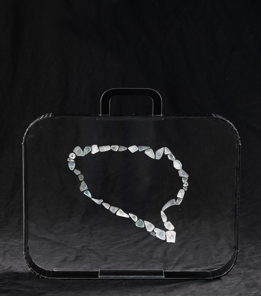 "Samlaren" planglas silikon och funna objekt. Foto Pelle Wahlgren